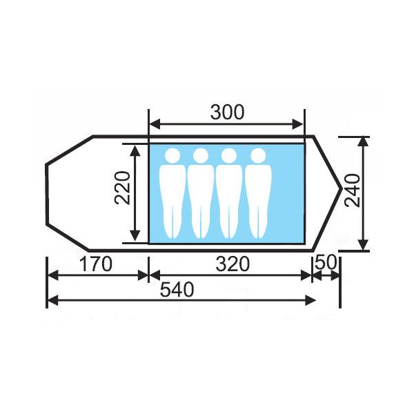 Размеры (внутренняя палатка): 300 х 220 см.